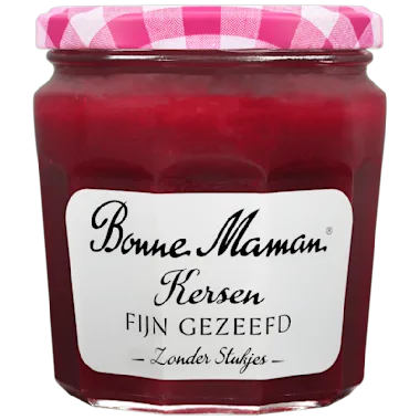 ingrediënten: vruchten (kersen 50%, appel 4%), suiker, bruine rietsuiker, geconcentreerd citroensap, geleermiddel: pectinen.