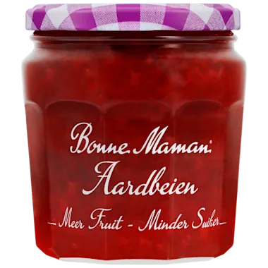 Dankzij de world-class expertise en de hoogste kwaliteit ingrediënten, kan Bonne Maman u de beste producten aanbieden, met eerlijke en lekkere smaken, om elke smaakbehoefte te vervullen. Bonne Maman introduceert een nieuwe lijn met traditioneel bereide fruit spreads met meer fruit en minder suiker. Bonne Maman heeft met grote zorg het beste fruit geselecteerd, en de minimaal benodigde hoeveelheid suiker toegevoegd om de natuurlijke smaken te activeren. Met zorg bereid voor een intense fruit ervaring, met mooie stukken fruit die smelten in je mond!