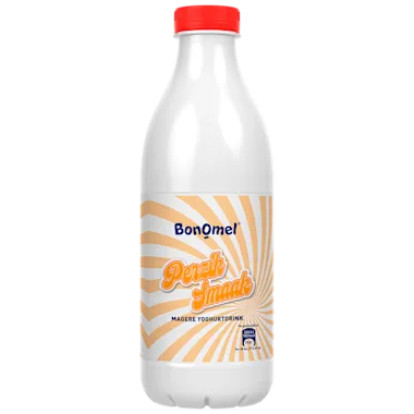 Ingrediënten: Vloeibare MELKbestanddelen, magere YOGHURT, suiker, perziksap, stabilisatoren (pectine, guarpitmeel), voedingszuur (melkzuur), aroma, kleurstof (bètacaroteen, karmijn)
