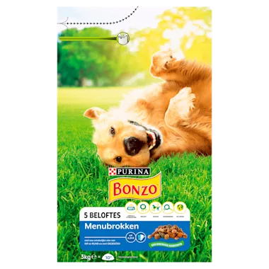 PURINA Bonzo Menubrokken is een bron van hoogwaardig eiwitten en alle andere voedingsstoffen die jouw hond nodig heeft om een gelukkig en gezond gezinsleven te leiden.