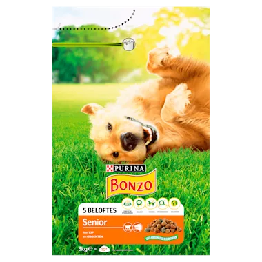PURINA Bonzo Senior is een heerlijk recept met kip en groenten, gecombineerd met volkoren granen, B vitamen en Omega 3&6 vetzuren. Bonzo Senior voor honden ouder dan 7 jaar biedt een 100% volledige en gebalanceerde maaltijd, speciaal ontwikkeld om de gewrichten van jouw hond gezond te helpen houden en zijn mobiliteit te ondersteunen.