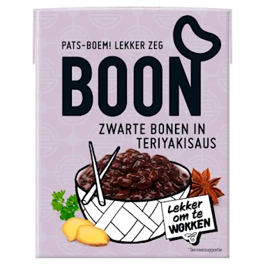 Vandaag zwarte bonen in teriyakisaus. Met deze glimmende zwarte bonen in een lekker zoet sausje geef je elk wokgerecht een oosters vleugje. Het is een bron van eiwit en rijk aan vezels. Daarnaast zorgt de bonenplant voor minder stikstof in de lucht en meer vruchtbare aarde. We werken met een eerlijke en een zo lokaal mogelijke bonenketen. Daarom zijn we op bonen-missie. Meer bonen op je bord betekent -PATS-BOEM- meer stikstofopslurpende bonenvelden. Lekker zeg. Eet je mee?