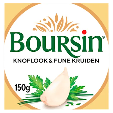 Nieuw recept, nog smeuïger Proef de nieuwe receptuur van boursin met de verse smaak van fijne kruiden en knoflook, en beleef de genereuze textuur; nu nog smeuïger... Dit is boursin voor de ware genieters! Dit product bevat 5 porties.