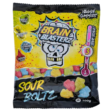 Zure gommiboltz. Smaak van appel, blauwe framboos, kers en ananas.