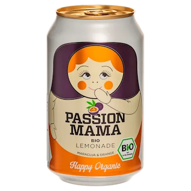 Biologische sinaasappel- en passievruchtlimonade.15,5% fruitgehalte - koolzuurhoudend