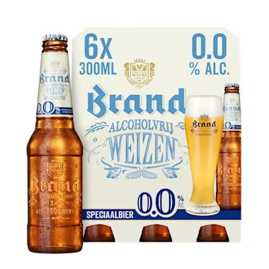 Brand Weizen 0.0% Zacht en fris zoet. Een Weizen zoals ’t hoort, maar dan lekker alcoholvrij, met een extra frisse, fruitige smaak en een zachte afdronk. Zo pak je dus een traditioneel volmout tarwebier, gebrouwen volgens Beiers recept, maar dan op ieder moment van de dag.