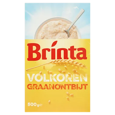 Brinta is het complete ontbijt. Brinta bestaat uit 100% volkoren tarwe en is een natuurlijke bron van 6 vitaminen en mineralen. Ideaal voor een krachtige start van iedere dag! Brinta bestaat uit volkoren tarwe en is een bron van voedingsvezels. Daarnaast is Brinta een bron van vitamine B1 en bevat Brinta ijzer.