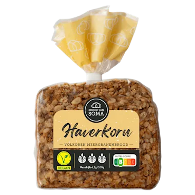 Ingrediënten: water, HAVERkorrels 16%, zonnebloempitten 13%, lijnzaad 10%, SPELTTARWEvlokken 8%, HAVERgrutten 4%, HAVERvlokken 3%, psylliumvezel, gepofte SPELTTARWE 2|%, gepofte ROGGEmout 2%, pompoenpitten 1%, appelazijn, gejodeerd zout, GERTSEmoutextract, zuutreregelaar: natriumacetaat. Kan bevatten: hazelnoot.