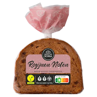 Brood van Soma Rozijnen-Noten rogge-tarwebrood