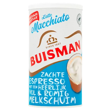 Schep 2 eetlepels poeder (ca. 14g) in een koffiekop. Schenk hierbij al roerende heet, niet meer kokend water (ca. 100ml). Wacht ca. 1 minuut en roer nogmaals. Klaar is uw heerlijke Latte Macchiato.
