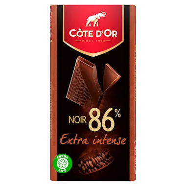 Ingrediënten: Cacaomassa, cacaoboter, magere cacaopoeder, suiker, natuurlijk vanillearoma, emulgator (SOJALECITHINEN), magere MELKPOEDER. Cacao: ten minste 86%. KAN BEVATTEN: NOTEN.