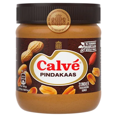 Calvé Pindakaas, wie is er niet groot mee geworden? Al sinds 1948 is Calvé Pindakaas is de enige échte pindakaas. Mild van smaak, lekker op brood of beschuit en smeuïg tot op de bodem. Dankzij ons vakmanschap lukt het ons om de smeuïgste van Nederland te zijn. Nederlands favoriete pindakaas bevat eiwitten die bijdragen aan de ontwikkeling van spieren, bij het eten van een portie (15 gram) per dag. Het geeft je energie om de hele dag door te komen. Je kunt met een gerust hart een lekkere boterham met pindakaas smeren voor je kids. Want pindakaas is rijk aan vezels en zit vol met vitaminen en mineralen. Deze pindakaas is een bron van bouwstoffen: het bevat onverzadigde vetten en eiwitten en het is een verantwoord broodbeleg dat geen toegevoegde suikers bevat, alleen natuurlijk voorkomende suikers. Gebruik Calvé Pindakaas in een evenwichtige voeding en een actieve levensstijl. Het is rijk aan onverzadigde vetten en een bron van eiwitten, vitamine B3, vitamine E, magnesium, zink en fosfor. Calvé-pindakaas is ook geschikt voor een veganistisch dieet. Bewaar op een koele, donkere plaats bij kamertemperatuur.