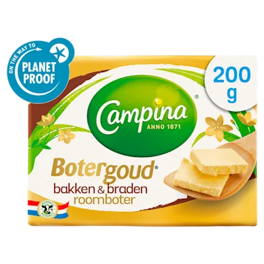 Campina Botergoud Bakken & Braden is heerlijk romig en puur van smaak! Het is speciaal ontwikkeld voor bakken & braden en spat daarom niet. Campina Botergoud Bakken & Braden is de beste smaakmaker voor bakken. Iedere gelegenheid verdient tenslotte échte boter.