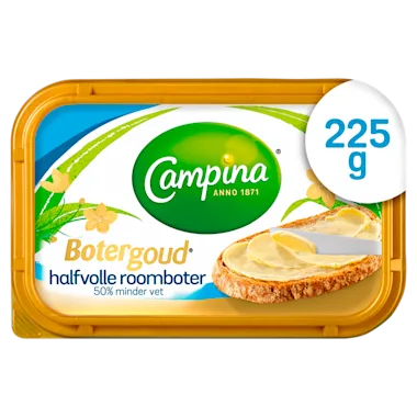 Ingrediënten: ROOMBOTER (48%), water, gemodificeerd zetmeel, emulgator: mono- en diglyceriden van vetzuren, zeezout, kleurstof: beta-caroteen, conserveermiddel: kaliumsorbaat.
