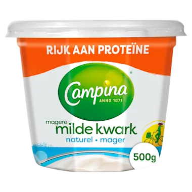 Campina. Voor een betere morgen. Van nature rijk aan proteine. Milde en romige smaak