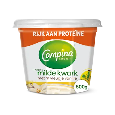 Ingrediënten: Magere KWARK, water, suiker, citroensap, maïszetmeel, natuurlijk vanillearoma, gemalen vanillestokjes
