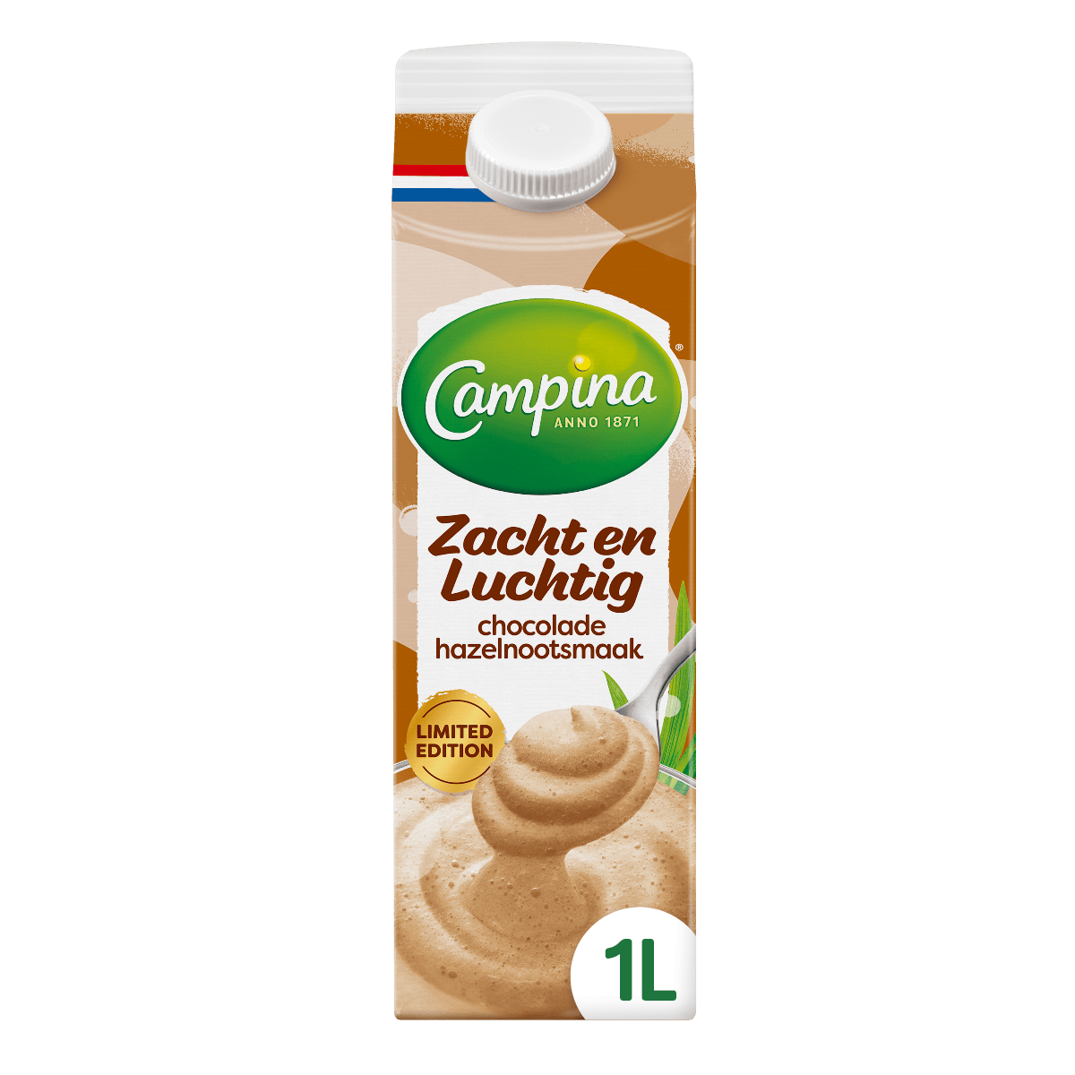 Zacht & Luchtig dessert chocolade- en hazelnootsmaak, bereid met 80% vla (1,3% melkvet)