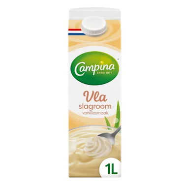 Gepasteuriseerde slagroomvla met vanille/karamelsmaak, met toegevoegd calcium