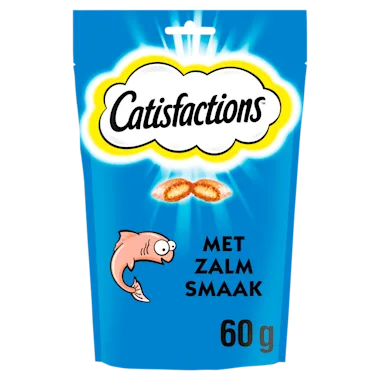Hey daar, jij die dit pakje vol lekkers met sappige zalmsmaak meeneemt om de zintuigen van je kat te prikkelen, jij moet wel een echte kattenliefhebber zijn! Heerlijk knapperig aan de buitenkant, zacht aan de binnenkant ... Katten kunnen niet weerstaan aan de geweldige smaak van Catisfactions™ traktaties. Verrassend genoeg gebruiken we geen geheim ingrediënt of magie om ze zo lekker te maken. Deze smakelijke traktaties zitten gewoon boordevol lekkere dingen waar katten dol op zijn. Dus kom op, schud met het zakje en kijk hoe uw kat komt aangerend.