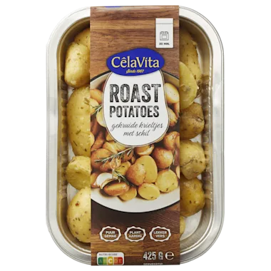 De CêlaVíta Roast Potatoes zijn halve krieltjes met schil en gekruid met Rozemarijn. Samen van de Roast Potatoes genieten met vrienden en/of familie.