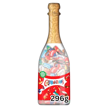 Celebrations: een mix van de populairste chocolade waar iedereen dol op is! Wil je iemand lekker verrassen? Met deze feestelijke cadeau fles maak je iedereen blij! De fles is duurzamer verpakt.
