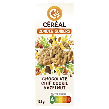 Ingrediënten: TARWEbloem 53,2%, zoetstof: maltitolen, stukjes chocolade met zoetstof 13,3% (cacaomassa^1, zoetstof: maltitolen, cacaoboter^1, emulgator: lecithinen), koolzaadolie, geroosterde HAZELNOTEN 5%, TARWEvezels, emulgator: lecithinen, natuurlijke aroma's, rijsmiddelen: citroenzuur, natrium- en ammoniumcarbonaten, zeezout, ^1Rainforest Alliance gecertificeerd. Lees meer op ra.org.