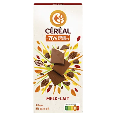 Deze heerlijke Céréal Melkchocolade bevat 79% minder suikers dan een standaard melkchocolade. De consumptie van levensmiddelen die de zoetstof maltitol in de plaats van suiker bevatten, leidt tot een lagere bloedglucosestijging na de consumptie daarvan in vergelijking met suikerhoudende levensmiddelen.