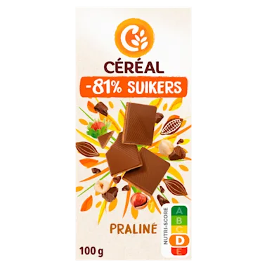 Deze heerlijke Céréal Melkchocolade Praliné bevat 81% minder suikers dan een standaard pralinéchocolade. De consumptie van levensmiddelen die de zoetstof maltitol in de plaats van suiker bevatten, leidt tot een lagere bloedglucosestijging na de consumptie daarvan in vergelijking met suikerhoudende levensmiddelen.