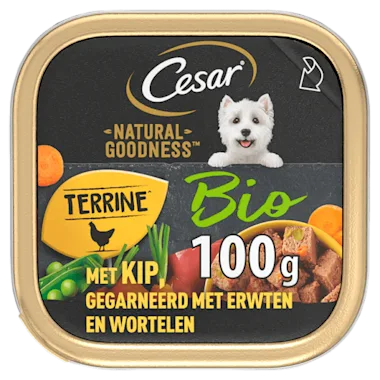 "Cesar Natural Goodness met Biologsiche Kip is werkelijk een heerlijk nat hondenvoer recept voor jouw kleine hond. Gemaakt van 100% natuurlijke ingrediënten. Bereid met veel groenten en kruiden en bevat tevens alle essentiële ingrediënten die je hond nodig heeft om gezond te blijven!