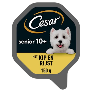 CESAR® Senior 10+ met Kip en Rijst helpt je oudere kleine hond fit te houden. De verbeterde receptuur voldoet volledig aan de specifieke voedingsbehoeften van kleine honden van 10 jaar of ouder en is licht verteerbaar.