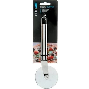 | Chef Aid Pizzasnijder RVS bestellen? | Geen geknoei meer met botte messen en vorkgaatjes in de pizza: met deze Chef Aid pizzasnijder snijdt je pizza als een pro! Het scherpe snijwiel glijdt namelijk soepel door elke pizza heen, van dik tot dun, zodat je deze perfect kunt verdelen. Ideaal voor pizzafeestjes!De pizzasnijder is gemaakt van roestvrij staal, een robuust materiaal dat lang meegaat en goed schoon te maken is. Hierdoor is dit rolmes ideaal voor dagelijks gebruik: snij bijvoorbeeld ook plat- en naanbrood in perfecte porties! Het pizzames heeft een stevig handvat, zodat je een goede grip hebt en je de pizza nog makkelijker snijdt. Jouw vingers blijven bovendien veilig dankzij de handige vingerbescherming! Berg hem na gebruik op aan het ophangoog, zodat hij altijd binnen handbereik is.Chef Aid heeft een ruim assortiment keukengerei die het koken en bakken leuker en makkelijker maken. Onze keuken essentials zijn gemaakt van hoogwaardige materialen en hebben het hoogste gebruiksgemak. |