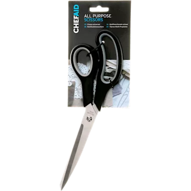 | Multifunctionele schaar voor ieder huishouden | De universele schaar van Chef Aid is onmisbaar in het huishouden. Deze schaar is ideaal om in de keukenla te bewaren, voor als je bijvoorbeeld een verpakking wilt openknippen. Deze schaar is geschikt voor allerlei soorten plastic en papier. Doordat de schaar is gemaakt van roestvrij staal, kun je deze veilig afnemen met een doekje. De ergonomische handgreep zorgt ervoor dat de schaar fijn in de hand ligt. Zo knip je met gemak elke verpakking open. |