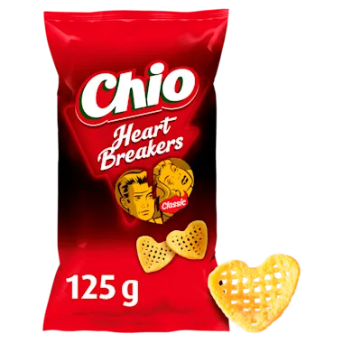 Door de selectie van de beste ingrediënten krijgen onze chips, nootjes, zoutjes en popcorn een unieke, lekkere smaak en crunch. Ervaar het zelf of met je vrienden! Breng meer plezier en gezelligheid in je leven. Chio, enjoy it your way! Heart shaped potato snack Luchtig en krokant Vegetarisch Glutenvrij Zonder kunstmatige kleurstoffen Zonder kunstmatige smaakstoffen