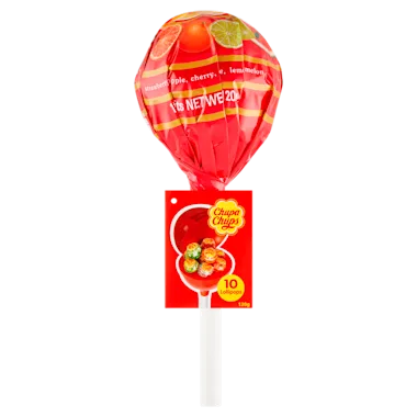 Een super mooi cadeau! Een grote Chupa Chups Lolly gevuld met mini lolly's. In de smaken: aardbei, sinaasappel, appel, kersen, watermeloen en citroen. Maar liefst 28 cm groot!