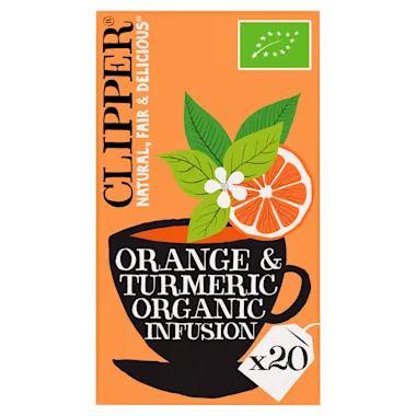 Biologische gearomatiseerde kruidenthee met sinaasappel en kurkuma