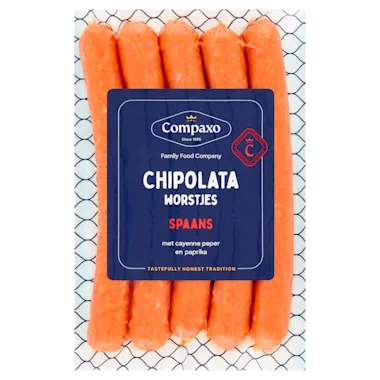 De chipolata spaans is een pittig gekruid worstje voor de liefhebber van wat extra pit en de smaak van Spanje! Ideaal om mee te nemen op vakantie en snel te bereiden op de BBQ of in een koekenpan.