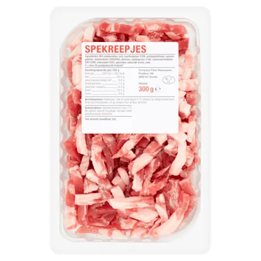 Koekenpan: bak de spekreepjes 8-15 minuten op matige temperatuur. Af en toe omscheppen. Let op, product door en door verhitten.