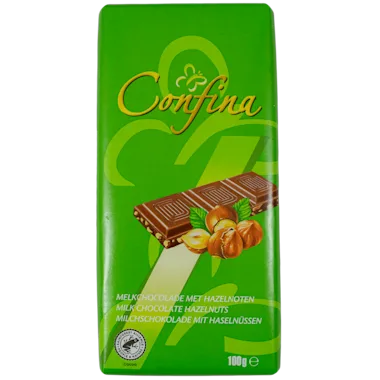 Ingrediënten: suiker, cacaoboter*, cacaomassa*, magere MELKpoeder, HAZELNOTEN, weipoeder (MELK), watervrij MELKvet, emulgator: lecithinen (SOJA), E476; natuurlijk vanillearoma. *Rainforest Alliance gecertificeerd. Kan bevatten: andere NOTEN, GLUTEN, PINDA's.