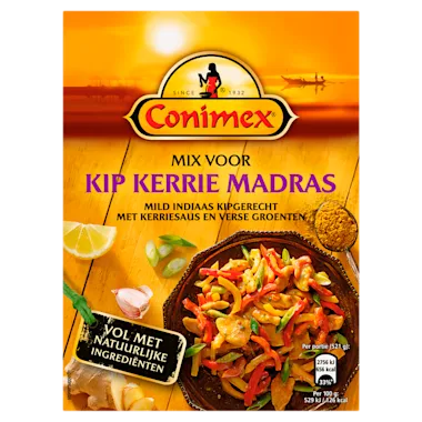 Conimex Kip Kerrie Madras, een heerlijk mild indisch kipgerecht.