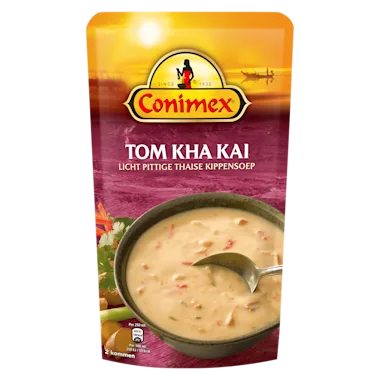 Met Conimex Tom Kha Kai Soep in Zak zet je snel een heerlijke soep op tafel