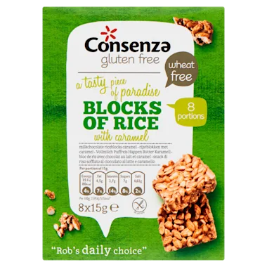 Gepofte rijst snack met melkchocolade en karamel glutenvrij