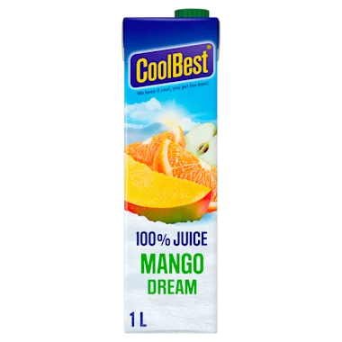 Ingrediënten: Vruchtensap uit concentraat (appel 55%, sinaasappel 33%, mango 10%, witte druif), natuurlijk aroma