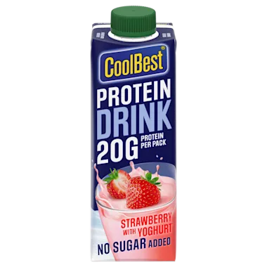 CoolBest Protein Drink, een unieke proteïne yoghurt drink gecombineerd met de beste kwaliteit fruit. Het is een mix van 40% fruit en 20 gram proteïne, vetvrij en zonder toegevoegde suikers! De eiwitten in deze drank houden je spieren sterk en ondersteunen je botten. Begin je dag lekker en fruitig! Ook handig voor onderweg!