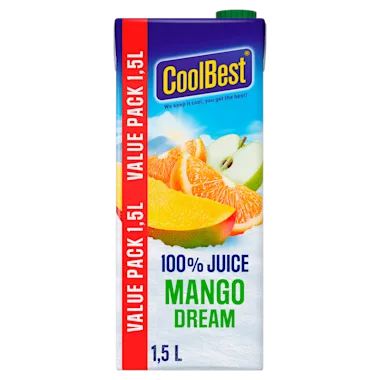 Ingrediënten: Vruchtensap uit concentraat (appel 55%, sinaasappel 33%, mango 10%, witte druif), natuurlijk aroma