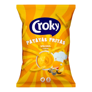 Aardappelsnack met Patatje Speciaal smaak, met suikers en zoetstof.