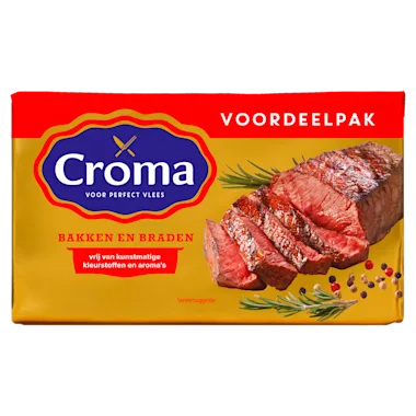 mooier.• Geeft het een heerlijke geur en smaak, daarom lekkerder.• Bevat geen water, daarom spat het niet van zichzelf.• Geeft je een heerlijke jus.Croma bevat geen kunstmatige geur-, kleur- en smaakstoffen.
