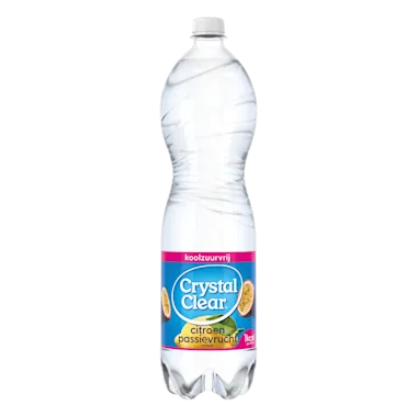 Drank op basis van water met citroen- en passievruchtsmaak, met zoetstoffen.