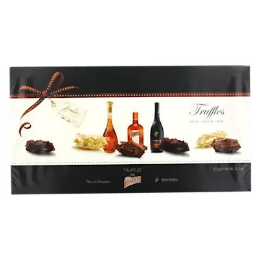 De truffels uit de Selection-reeks zijn gemaakt van Belgische chocolade. Ze hebben een smeuïge vulling dewelke met A-merk likeuren op smaak gebracht werd. Bovendien zijn ze rijkelijk bestrooid met fijne stukjes chocolade. Het strikje op de verpakking zorgt voor een feestelijke uitstraling, ideaal als cadeautje!