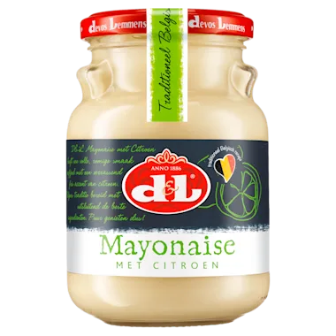 Belgische Mayonaise met citroen van Devos&Lemmens volgens traditioneel recept, overheerlijk fris bij salades, koude visgerechten en groenten, maar ook bij frietjes en tal van andere gerechten zoals fondue, gourmet en barbecue.
