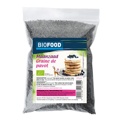 Biologisch maanzaad is zeer gezond doordat deze rijk is aan onverzadigde vetzuren, dat op zijn beurt een goede werking heeft op het brein en het hart. Je gebruikt ze vooral in brood, gebak en patisserievullingen, maar ook lekker als topping op hartige gerechten voor een extra bite.